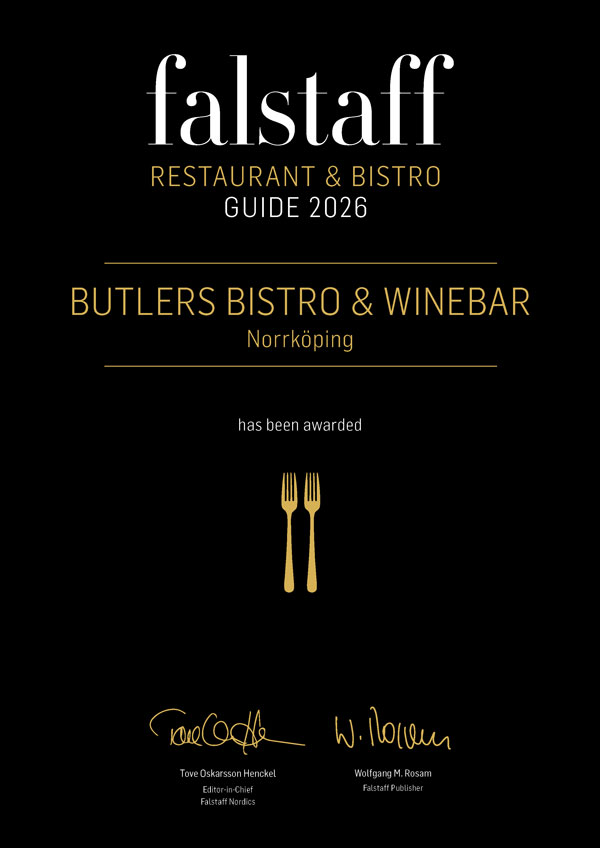 Butlers är en modern samlingsplats i centrala Norrköping, mitt i stadens hjärta, ett stenkast från Louis de Geer konsert & kongress samt citygalleriorna, som öppnades 1985. En bistro med klassiska svenska och franska rätter. En generös och stor à la carte-meny som kompletteras av en Plat du Jour. Vi erbjuder även en lunch-meny med stort urval av rätter både varierande varje vecka samt våra fasta favoriter. Butlers är en traditionstung men ändå modern krogklassiker som alltid visar stor respekt till vårt svenska matarv.